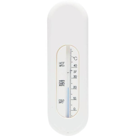 Termometr kąpielowy Biały od bébé-jou jest bardzo dokładny. Posiada skalę z odpowiednio zaznaczoną temperaturę jaką powinna mieć woda (37 stopni). Na termometrze znajduje się również skala pokazującą zbyt wysoką i zbyt niską temperaturę wody. Będzie stanowił idealne uzupełnienie pozostałych akcesoriów kąpielowych z kolekcji White.