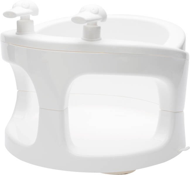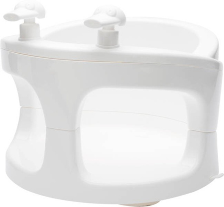 Siedzisko kąpielowe od bébé-jou. Doskonały pomysł dla dzieci, które rozpoczynają swoją przygodę z kąpielą w dużej wannie, ale nie czują się jeszcze na tyle pewnie by siedzieć samodzielnie. Krzesełko zapewnia stabilność i bezpieczeństwo w czasie kąpieli. W krzesełku znajdują się kaczuszki, które zasysają wodę i dziecko może się świetnie bawić psikając wodą. Krzesełko ma na spodzie specjalne przyssawki, które zapewniają że nie przesuwa się w wannie podczas kąpieli i jest stabilne. Siedzisko jest odpowiednie dla dzieci od 7 do około 16 miesięcy.
