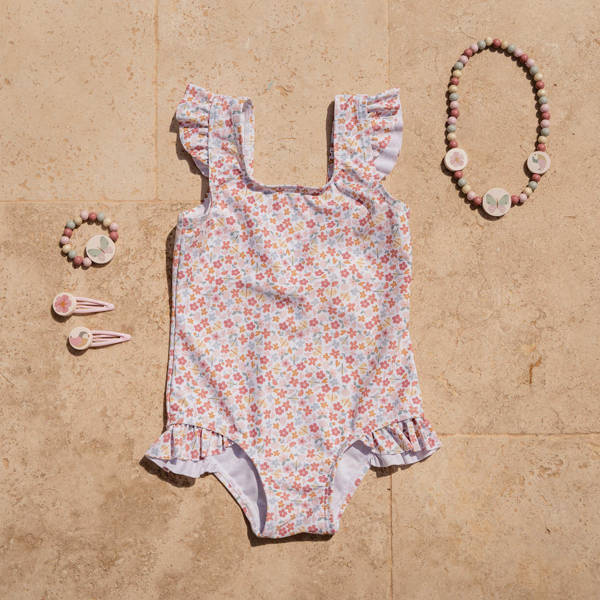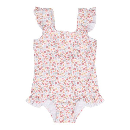 Kostium kąpielowy Multicolor od Little Dutch z kolekcji Summer Flowers. Kostium jest bardzo wygodny, mięciutki i zapewnia pełną swobodę podczas aktywności w wodzie czy na plaży. Sprawdzi się idealnie na basenie, na plaży lub podczas wakacyjnych zabaw w piasku. Posiada zalotne falbanki, które dodają mu uroku. Wykonany z materiału, który blokuje przenikanie promieni UV.