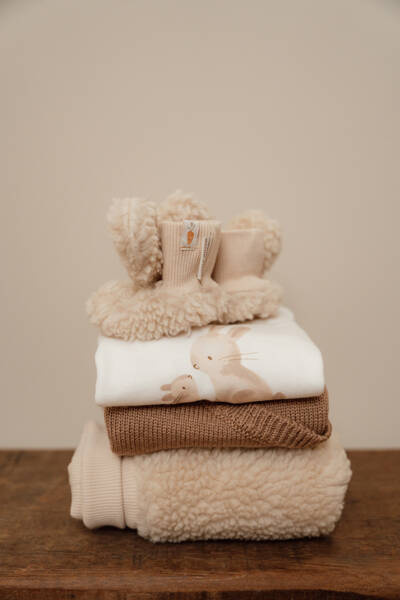 Spodnie Teddy - Sand od Little Dutch. Te stylowe spodenki zapewnią Twojemu dziecku ciepło w sezonie zimowym. Z milutką tkaniną Teddy na zewnątrz i dżersejową tkaniną od wewnątrz z motywem króliczka, te spodnie są najlepszym wyborem na chłodne dni. Mankiety u dołu nogawek i ściągacz są prążkowane i elastyczne, co ułatwia zakładanie spodni. Można je łączyć z innymi elementami kolekcji Teddy oraz koszulkami z długim rękawem. Stanowią świetne uzupełnienie do pozostałych ubranek od Little Dutch.