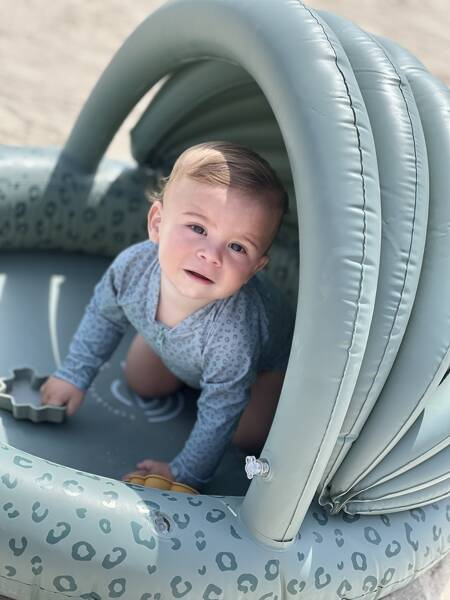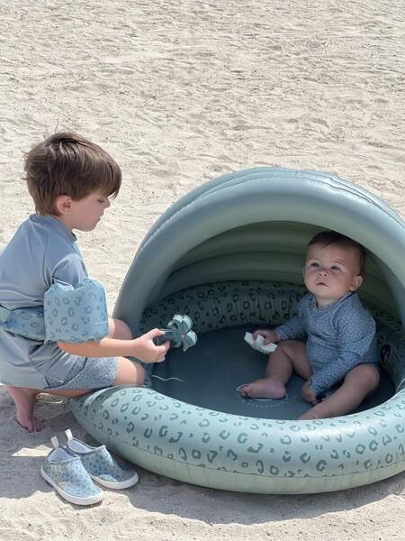 Basen z daszkiem 100 cm Green Leopard od The Swim Essentials. Okrągły, dmuchany basenik składa się z dmuchanego rantu, które zapewniają stabilność całej konstrukcji oraz praktycznego daszku. Ten basen łączy w sobie unikalny design z osłoną przeciwsłoneczną, dzięki czemu Twoje dzieci mogą bawić się bezpiecznie i w komfortowej temperaturze przez cały dzień. Dzięki średnicy 100 cm i pojemności 60 litrów jest w nim mnóstwo miejsca do pluskania! Zabierzcie go ze sobą w dowolne miejsce. Doskonale sprawdzi się na plaży, w ogrodzie lub podczas wakacyjnego wyjazdu. Basen do zabawy na świeżym powietrzu, idealny na wakacyjne dni, zapewni przyjemną ochłodę i super zabawę. Sprawdź pozostałe akcesoria do wody od The Swim Essentials.