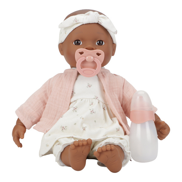 Lalka Noa od Little Dutch to urocza i realistyczna lalka z miękkim brzuszkiem – idealna do przytulania. Butelka i smoczek, które są w zestawie, posłużą do karmienia i usypiania ukochanej lalki. Dzieci uwielbiają naśladować wszystko, co robią ich rodzice, a ta lalka-bobas zainspiruje Twojego malucha do odgrywania ról związanych z opieką. Noa ma na sobie opaskę do włosów, sukienkę i spodnie ze wzorem White Meadows oraz jasnoróżową kurteczkę. Osobno można dokupić dodatkowy komplet ubranek. Zmiana ubrań rozwija małą motorykę, a smoczek i butelka na mleko to dodatki do interaktywnej zabawy.
