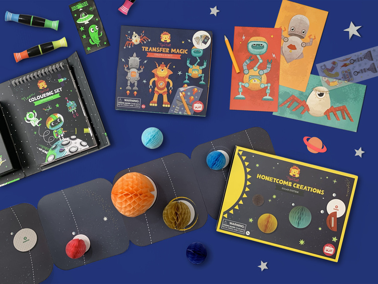 Zestaw Kolorowanek Neonowych - Kosmos od Tiger Tribe to kreatywny zestaw wypełniony po brzegi aktywnościami, neonowymi markerami i naklejkami. Wszystko zaprojektowane tak, aby Tygryski były zajęte w podróży. Wszystko, czego potrzebujesz, w jednym pudełku z magnetyczną klapką, aby bezpiecznie przechowywać zawartość. Zaprojektowane z myślą o przenośnej zabawie, zestawy do kolorowania Tiger Tribe stanowią mile widzianą alternatywę dla czasu spędzonego przed ekranem, promując uważność, relaks i odprężające zajęcie.