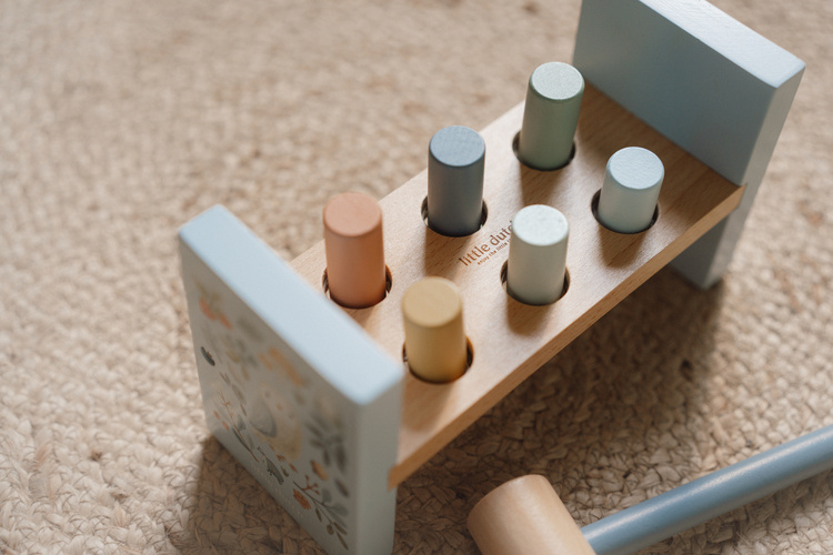 Drewniana przebijanka Forest Friends FSC od Little Dutch. Zabawa polega na uderzaniu w kołki przebijając je na dół. W skład przebijanki wchodzi 6 kołków w różnych kolorach, drewniana ławeczka i młotek. To bardzo dobre ćwiczenie poprawiające zdolności motoryczne dzieci. W chwili przebicia wszystkich kołków, można odwrócić zabawkę i rozpocząć zabawę od nowa. Przebijanka jest świetnym pomysłem na prezent i doskonale uzupełnienia pozostałe zabawki z kolekcji Forest Friends od Little Dutch.