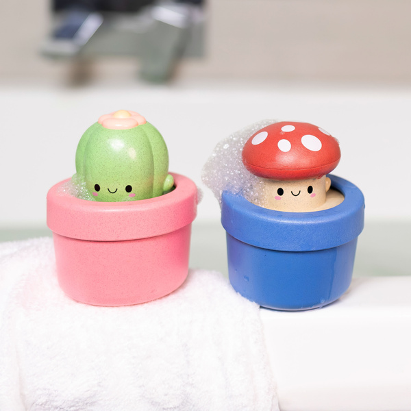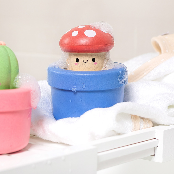 Zabawka Kąpielowa - Grzybek od Tiger Tribe. Zarówno dzieci, jak i rodzice będą zachwyceni tą super uroczą zabawką do kąpieli w kształcie muchomorka, która wyskakuje z doniczki, gdy zanurzy się ją w wodzie! Po wyjęciu z wanny woda będzie wylewać się od spodu, gdy wody będzie ubywać - grzybek znów się ukryje. Ta sprytna zabawka stanowi świetną rozrywkę dla maluchów w czasie kąpieli. Promuje zabawę sensoryczną, jednocześnie ucząc dzieci o przyczynach i skutkach, pomagając rozwijać umiejętności motoryki dużej. Ten produkt jest częścią serii ECO, stworzonej z bioplastiku.