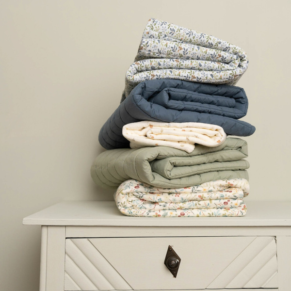 Kołderka 70x100 cm Forest Adventure & Forest Treasures od Little Dutch. Piękna kołderka, która zapewni dziecku cudowne ciepło i przytulność podczas snu. Wykonana z bawełny organicznej i ozdobiona subtelnymi pikowanymi paskami w nowoczesnym stylu. Delikatnie wypełnienie dodaje jej miękkości. Kołderka jest dwustronna - można wybrać subtelny nadruk Forest Treasures z jasną tkaniną z nadrukiem małych grzybków i liści lub niebieską stronę z nadrukiem Forest Adventure Idealny wybór do pokoju maluszka. Kołderka pięknie łączy się z innymi produktami z kolekcji Forest Friends.
