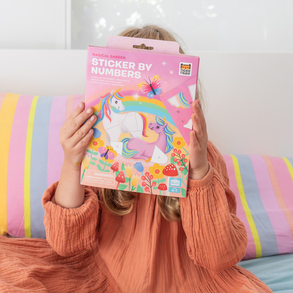Wyklejanie po Numerach - Magiczny Ogród od Tiger Tribe. W tym zabawnym zestawie jest mnóstwo magicznych stworzeń w zaczarowanym ogrodzie! Miłośnicy naklejek będą zachwyceni dopasowywaniem ponumerowanych elementów naklejek do odpowiadających im wzorów, obserwując, jak dzieło sztuki pojawia się na ich oczach. Zapakowane w kompaktowe, samowystarczalne, magnetyczne, szczelne pudełko, dzieci mogą ćwiczyć rozpoznawanie liczb, jednocześnie rozwijając swoje umiejętności motoryczne i koordynację ręka-oko. Świetne do skupienia i koncentracji. Zestawy Tiger Tribe stanowią świetną alternatywę dla czasu spędzonego przed ekranem, promując uważność, relaks i odprężające zajęcie.