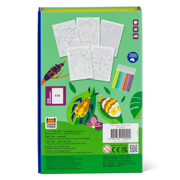 Kolorowanie po Numerach - W Tropikach od Tiger Tribe to uroczy zestaw do kolorowania przeznaczony dla kreatywnych dzieci, które lubią mieć pewne wskazówki dotyczące ich artystycznej eksploracji. Wbudowany klucz kolorów pozwala na budowanie pewności siebie w rozmieszczaniu kolorów, tak aby obrazek wyglądał jak najlepiej. Kolorowanie po numerach jest świetne do skupienia i koncentracji. Te najwyższej jakości zestawy są zaprojektowane do bezproblemowej, przenośnej zabawy, zapewniając maluchom zajęcie podczas podróży samolotem, w samochodzie, w kawiarniach lub w domu.