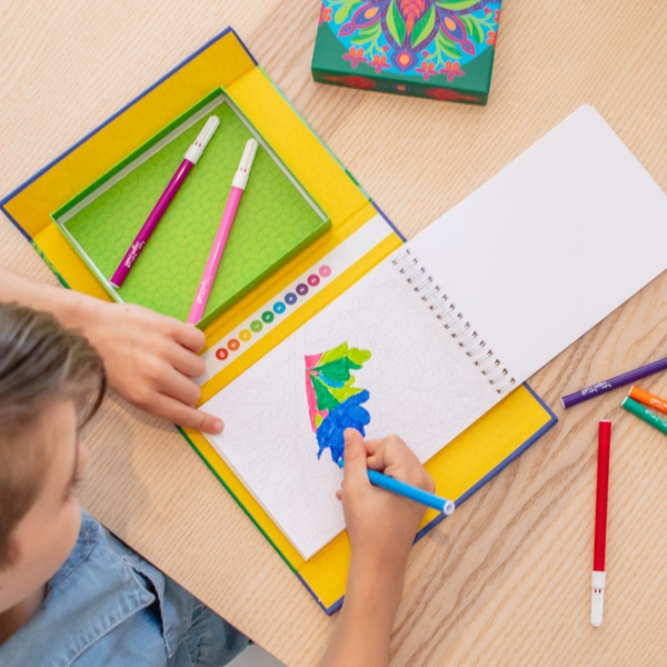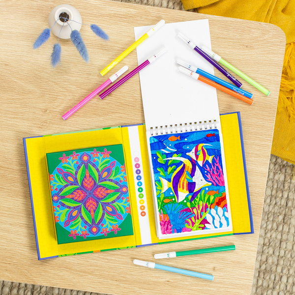 Skład zestawu: 36x ilustrowanych stron do kolorowania, klucz kolorów, 10x kolorowych flamastrów