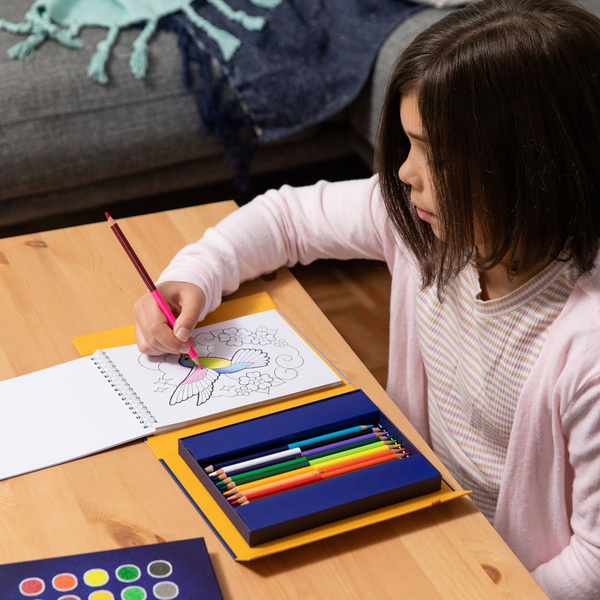 Zestaw do Rysunku – Nauka Blendowania od Tiger Tribe to kreatywny zestaw, który wprowadza na wyższy poziom rysunku ucząc blendowania, mieszania kolorów i innych bardziej złożonych technik rysunku. W zestawie znajduje się 10 wysokiej jakości dwustronnych kredek oraz przyjazna instrukcja przeprowadzająca krok po kroku przez techniczne aspekty rysowania. Zestaw zaprojektowany tak, aby Tygryski były zajęte w podróży - w jednym pudełku z magnetyczną klapką, aby bezpiecznie przechowywać zawartość. Zaprojektowane z myślą o przenośnej zabawie zestawy do kolorowania Tiger Tribe stanowią świetną alternatywę dla czasu spędzonego przed ekranem, promując uważność, relaks i odprężające zajęcie.