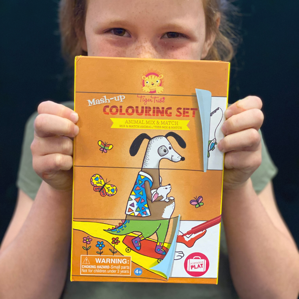 Zestaw Kolorowanek - Zwierzaki od Tiger Tribe to kreatywna zabawa polegająca na tworzeniu obrazów wesołych zwierzątek z pomocą przekręcanych karteczek. Stwórz 32 postacie lub wymieszaj poszczególne strony, aby tworzyć setki różnych kombinacji. Możesz nawet narysować własne głowy, ciała i nogi na dołączonych pustych stronach. Zaprojektowane z myślą o przenośnej zabawie. Wszystko, czego potrzebujesz, w jednym pudełku z magnetyczną klapką, aby bezpiecznie przechowywać zawartość.