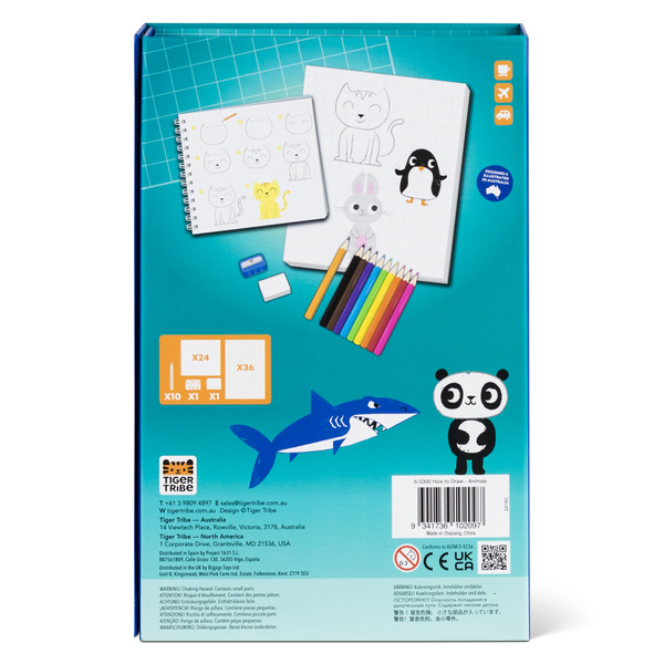 Jak Rysować - Zwierzęta od Tiger Tribe to odświeżona wersja uwielbianego przez dzieci zestawu który ma wszystko, czego mali artyści potrzebują, aby rysowanie stało się łatwe! Postępuj zgodnie z prostymi instrukcjami krok po kroku, a w mgnieniu oka stworzysz wspaniałe dzieło sztuki. Opakowanie tego zestawu do kreatywnej aktywności zostało specjalnie zaprojektowane z przegródkami do przechowywania, aby zachować bezpieczeństwo kredek i stworzonych własnoręcznie dzieł sztuki, dzięki czemu idealnie nadaje się do przenośnej i bezproblemowej zabawy.