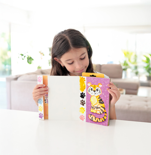Przenośne Kolorowanki Wodne – Tęczowe Niebo od Tiger Tribe. Maluchy mogą odkrywać malowanie bez bałaganu dzięki temu przenośnemu zestawowi. Kolorowanka wodna to idealne wprowadzenie do malowania dla maluchów. Zestaw zawiera 16 pięknie ilustrowanych stron z motywem jednorożców w pastelowej krainie snów. Na każdej stronie znajduje się zestaw farbek z kolorami dopasowanymi do danego obrazka. Malowanie odbywa się z pomocą bezpiecznego i czystego pędzelka wodnego. Każde dzieło sztuki można wyrwać z zestawu i oprawić w ramki.