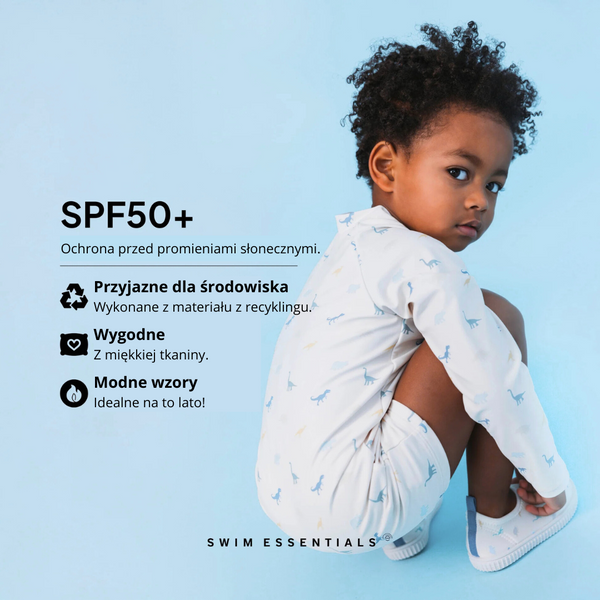 Swimsuit Dino Rashguard 86/92 od The Swim Essentials. Wykonany z wysokiej jakości tkaniny, która zapewnia doskonałą ochronę przed promieniowaniem UV na poziomie UPF 50+. Dzięki temu Twój maluch może cieszyć się całymi dniami na zewnątrz, a Ty nie musisz się martwić o ryzyko poparzeń słonecznych. Wygodny suwak z przodu zapewnia łatwe zakładanie a napy u dołu ułatwią wymianę pieluszki, długie rękawki to lepsze zabezpieczenie przed promieniowaniem UV. Przygotuj swojego malucha na wspaniałe lato i sprawdź pozostałe akcesoria do pływania i zabawy w wodzie od The Swim Essentials.