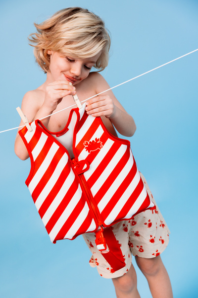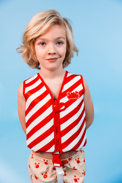 Kamizelka do nauki pływania dla dzieci Oh Crab od The Swim Essentials. Idealnie sprawdzi się do nauki pływania i zapewnienia wyjątkowego bezpieczeństwa podczas zabawy w wodzie. Piankowa kamizelka zapinana jest na suwak na całej długości, zabezpieczona rzepem na wysokości klatki piersiowej oraz wyposażona w pas pomiędzy nogami, co zapobiega wyślizgnięciu się z niej dziecka. Dzięki użyciu pianki jako głównego materiału kamizelka jest wyjątkowo lekka. Przeznaczona jest dla dzieci o wadze 18-30 kg. Kamizelka jest idealna do zabrania ze sobą na wakacje nad jezioro, czy nad morze, ale świetnie sprawdzi się również na basenie.