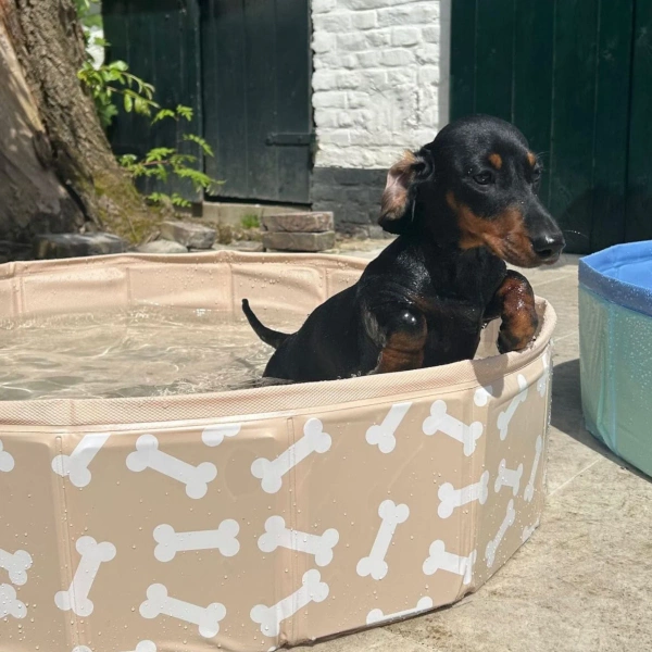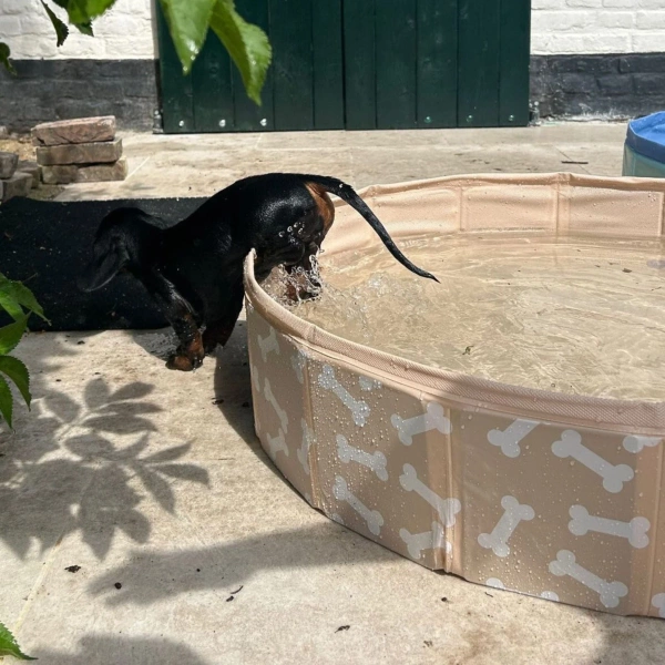 Basen chłodzący dla psa 80 cm Bonebash Beige od The Swim Essentials. Dzięki temu basenowi Twój wierny towarzysz może wziąć orzeźwiającą kąpiel, gdy robi się gorąco. Dzięki średnicy 80 cm basen jest wystarczająco duży dla małych i średnich psów. Jest łatwy w montażu, dzięki czemu Twój pies może szybko cieszyć się orzeźwiającą zabawą. Pozwól swojemu przyjacielowi pluskać się i bawić w tym basenie. Sprawdź pozostałe akcesoria do wody od The Swim Essentials.