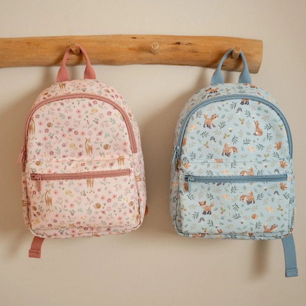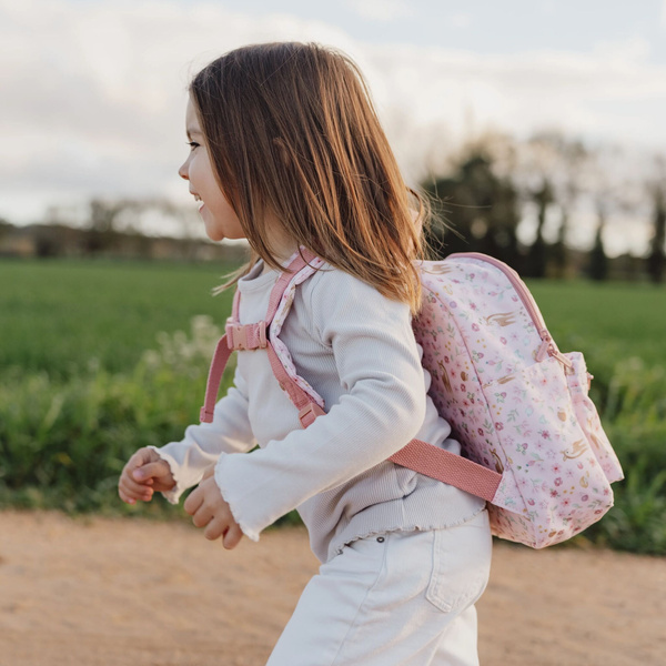 Plecak Fairy Garden od Little Dutch. Uroczy plecaczek z sarenką i innymi motywami kolekcji Fairy Garden wspaniale sprawdzi się jako pierwszy plecak na rodzinne wycieczki, do żłobka lub przedszkola. Plecak ma regulowane naramienne paski oraz pasek piersiowy, dzięki czemu będzie jeszcze stabilniejszy podczas noszenia. Plecak posiada zewnętrzna kieszonkę, a wewnątrz znajdują się dwie gumki, które mogą służyć do podtrzymania kubeczka czy bidonu w pozycji pionowej. Wewnątrz plecaka jest także plakietka, na której można wpisać dane dziecka. Wspaniały prezent dla małych odkrywców. Stanowi doskonałe uzupełnienie do pozostałych produktów z kolekcji Fairy Garden.