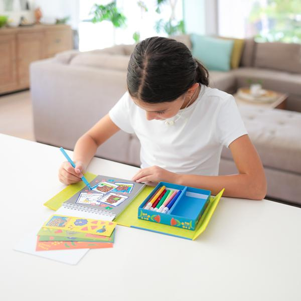 Skład zestawu: 36 stron do kolorowania, 10 flamastrów, 5 arkuszy naklejek, magnetyczne pudełko do przechowywania