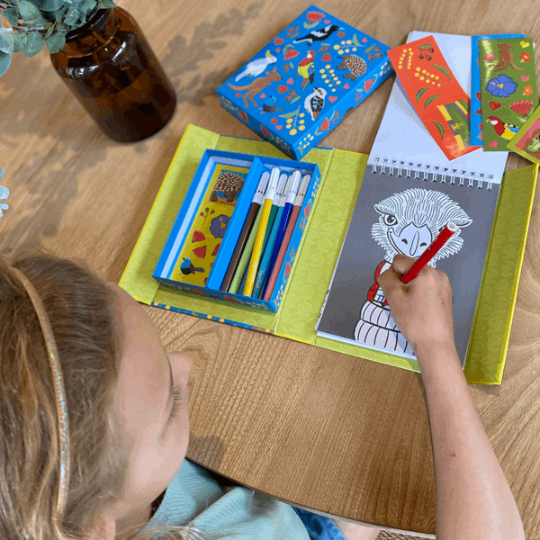 Zestaw Kolorowanek – Australijskie Zwierzęta od Tiger Tribe to kreatywny zestaw do kolorowania. Wybierz się w podróż po świecie fascynujących autralijskich zwierzątek dzięki zestawowi do kolorowania, który zawiera pięknie ilustrowane strony z koalami, wombatami, strusiami i innymi. Zestaw zaprojektowany tak, aby Tygryski były zajęte w podróży - w jednym pudełku z magnetyczną klapką, aby bezpiecznie przechowywać zawartość. Zaprojektowane z myślą o przenośnej zabawie zestawy do kolorowania Tiger Tribe stanowią świetną alternatywę dla czasu spędzonego przed ekranem, promując uważność, relaks i odprężające zajęcie.