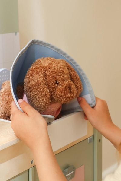 Czas na wizytę u weterynarza! Ten uroczy drewniany gabinet weterynaryjny Little Dutch pozwala dzieciom wcielić się w rolę prawdziwego opiekuna zwierząt. Idealny dla małych miłośników piesków i kotków, którzy chcą troszczyć się o swoich pluszowych przyjaciół.