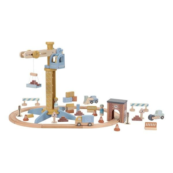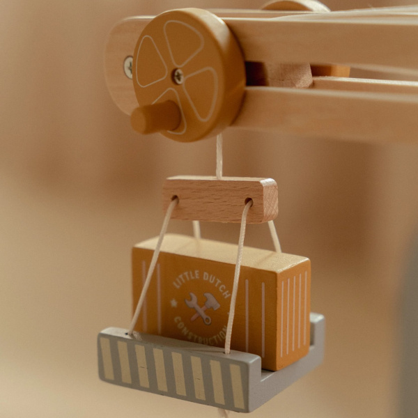 Zbudujmy wspólnie coś fajnego! Drewniany dźwig od Little Dutch to super pomysł na ciekawą zabawę. Pracownik dźwigu sprawnie załaduje na podnośnik ciężki sprzęt i przeniesie go w dowolnie wybrane miejsce. Zestaw zawiera figurki robotników, pojazdy, materiały budowlane. Jest kompatybilny z zestawem kolejki XL 100 elementów Little Dutch.