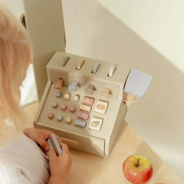 Kasa sklepową od Little Dutch to coś więcej niż zwykła zabawka. Podczas wesołej zabawy w sklep maluch rozwija zdolności matematyczne i logiczne, ćwiczy koordynację ruchową, a także uczy się zasad społecznych, takich jak dzielenie się czy współpraca. Dzięki terminalowi i akcesoriom dziecko może odgrywać realistyczne scenki, co pobudza wyobraźnię i kreatywność. Stylowy design sprawia, że kasa nie tylko bawi, ale i zdobi dziecięcy kącik zabaw.