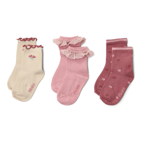 Skarpetki 3-pak Multi od Little Dutch. Zapewnią komfort i wygodę podczas zabawy. Do wyboru są trzy różne wzory: piaskowe skarpetki z dwoma kwiatuszkami, zielone z falbanką przy kostce oraz ciemnoróżowe ozdobione drobnymi kwiatkami. Wykonane z miękkiej bawełny organicznej, dostępne w rozmiarach 20/22 oraz 23/26. Świetnie komponują się z innymi elementami kolekcji – idealne do tworzenia spójnych, stylowych zestawów.