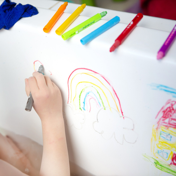 Skład zestawu: 8 wysuwanych kolorowych kredek kąpielowych, ściereczka do czyszczenia