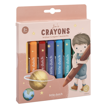 Pozwól swojemu dziecku odkrywać świat kolorów z uroczymi kredkami woskowymi Jim & Friends od Little Dutch! To idealny zestaw pierwszych kredek, który łączy zabawę z nauką i rozwijaniem małej motoryki.