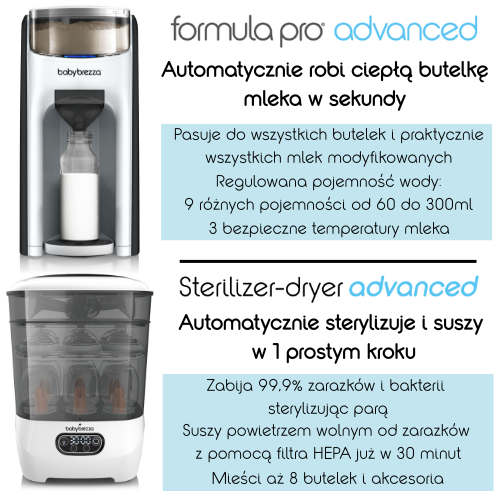 TANIEJ W ZESTAWIE: Ekspres do mleka Baby Brezza Formula Pro Advanced + Sterilizer Dryer Advanced