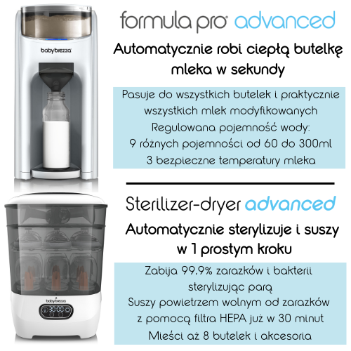 ZESTAW 2w1: Ekspres do mleka Baby Brezza Formula Pro Advanced All White + Sterilizer Dryer Advanced