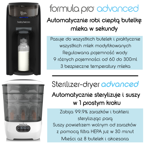 ZESTAW 2w1: Ekspres do mleka Baby Brezza Formula Pro Advanced All Black + Sterilizer Dryer Advanced