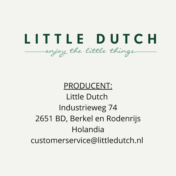Little Dutch to holenderska firma rodzinna, prowadzona przez małżeństwo, które wkłada całe serce w tworzenie produktów dla najmłodszych. W ofercie marki znajdują się doskonałej jakości tekstylia, produkowane z bawełny organicznej z certyfikatem Oeko-tex, takie jak ręczniki, śpiworki do spania, otulacze, akcesoria do pokoików dziecięcych oraz zabawki sensoryczne dla niemowląt, jak również zabawki czy pojazdy wytwarzane z drewna. Produkty Little Dutch cechuje spokojna, pastelowa kolorystyka.